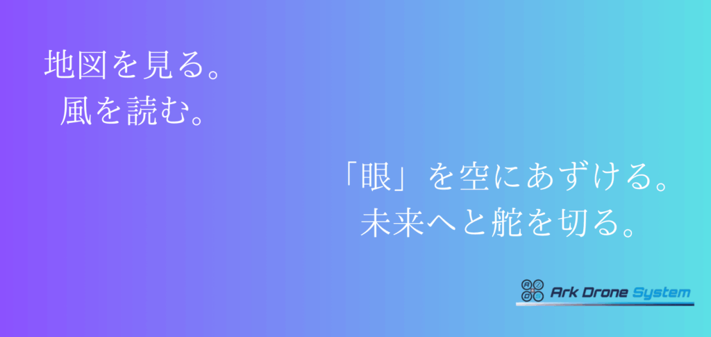 Ark Drone Systemの「Ark 」はラテン語のArc(箱船)に由来します。私たちは「ドローン」という画期的かつ最先端の無人航空機で、つねに皆さまのお困りごとに寄り添い、そして皆さまの夢や希望を載せ、ともに輝かしい未来へと飛翔する事業体でありたいと考えます。